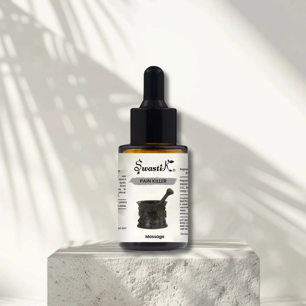 This blend works on multiple levels warming stiff areas, improving circulation, and calming overworked muscles. Regular massage with Swastik Pain Killer helps ease soreness, stiffness, and persistent body aches, making it a valuable addition to daily wellness routines centered around aromatherapy for pain relief.