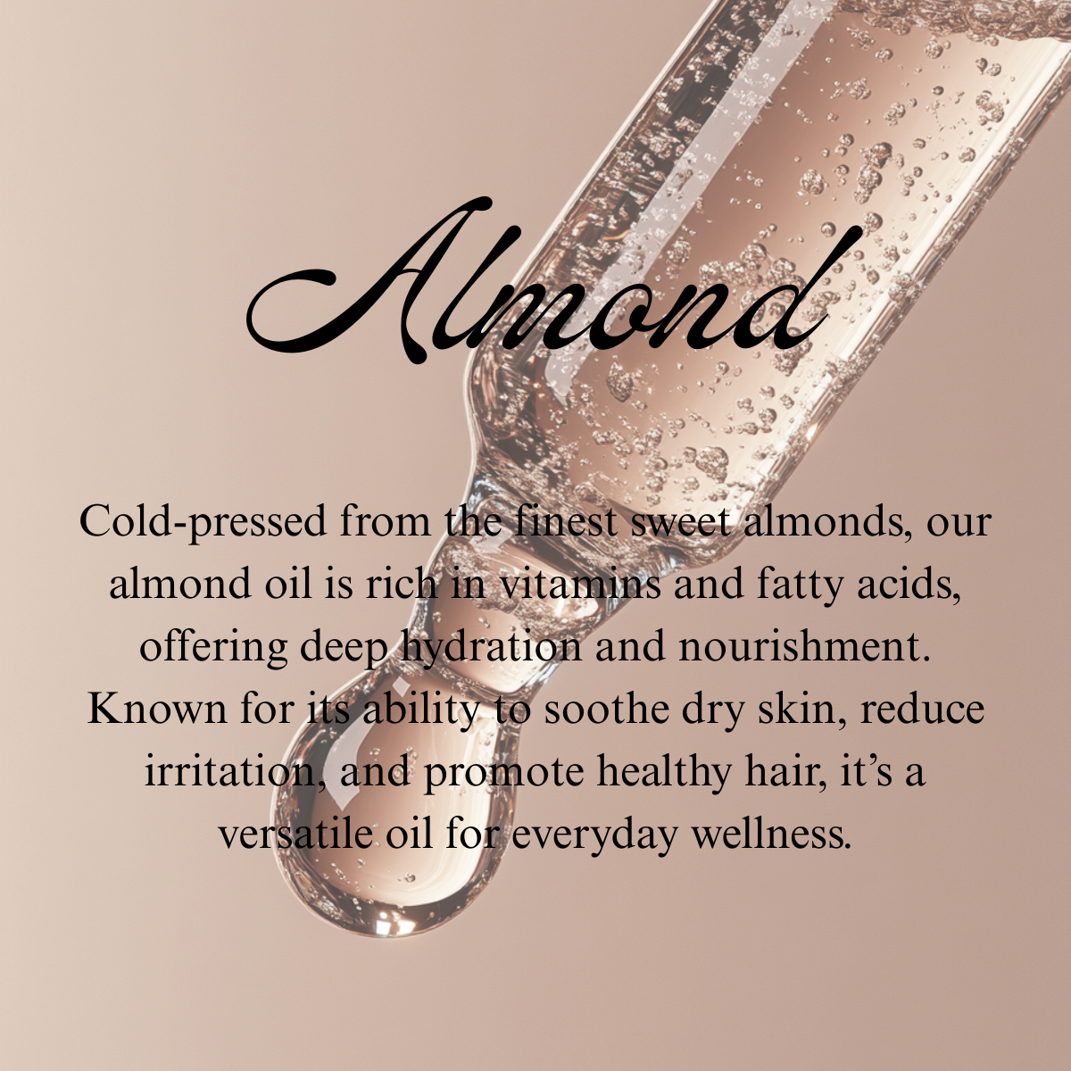 Cold-pressed to retain its purest form, our almond oil envelops the skin with rich moisture and profound care. It is a true indulgence, a quiet luxury you deserve, and a moment of serenity in every use.
