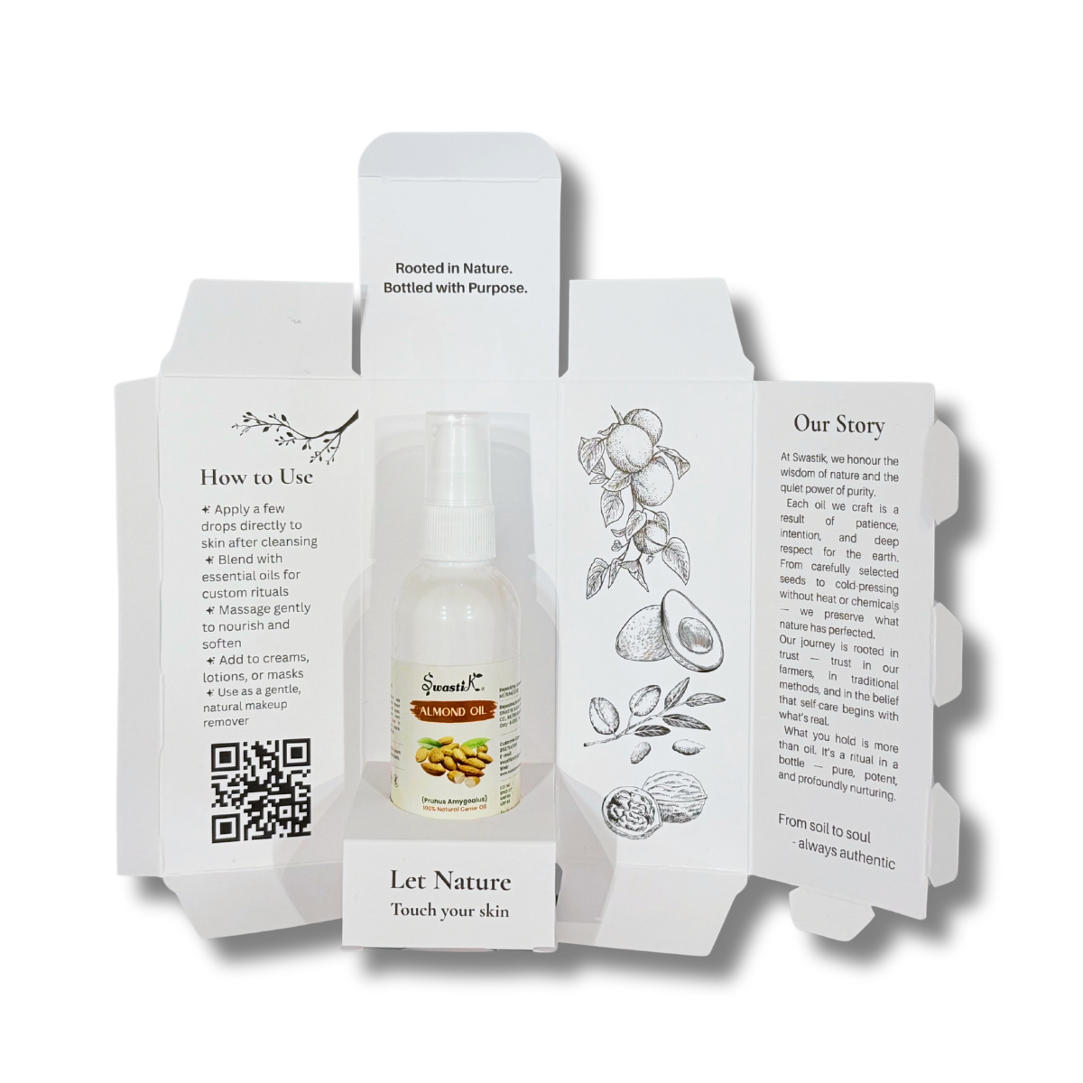 At Swastik, we offer you the finest expression of this timeless gift Almond Oil. Cold-pressed from the sweet, plump almonds of the highest quality, this oil is more than a skincare essential. It is a soothing touch, a moment of indulgence, and a nurturing embrace for both body and soul.