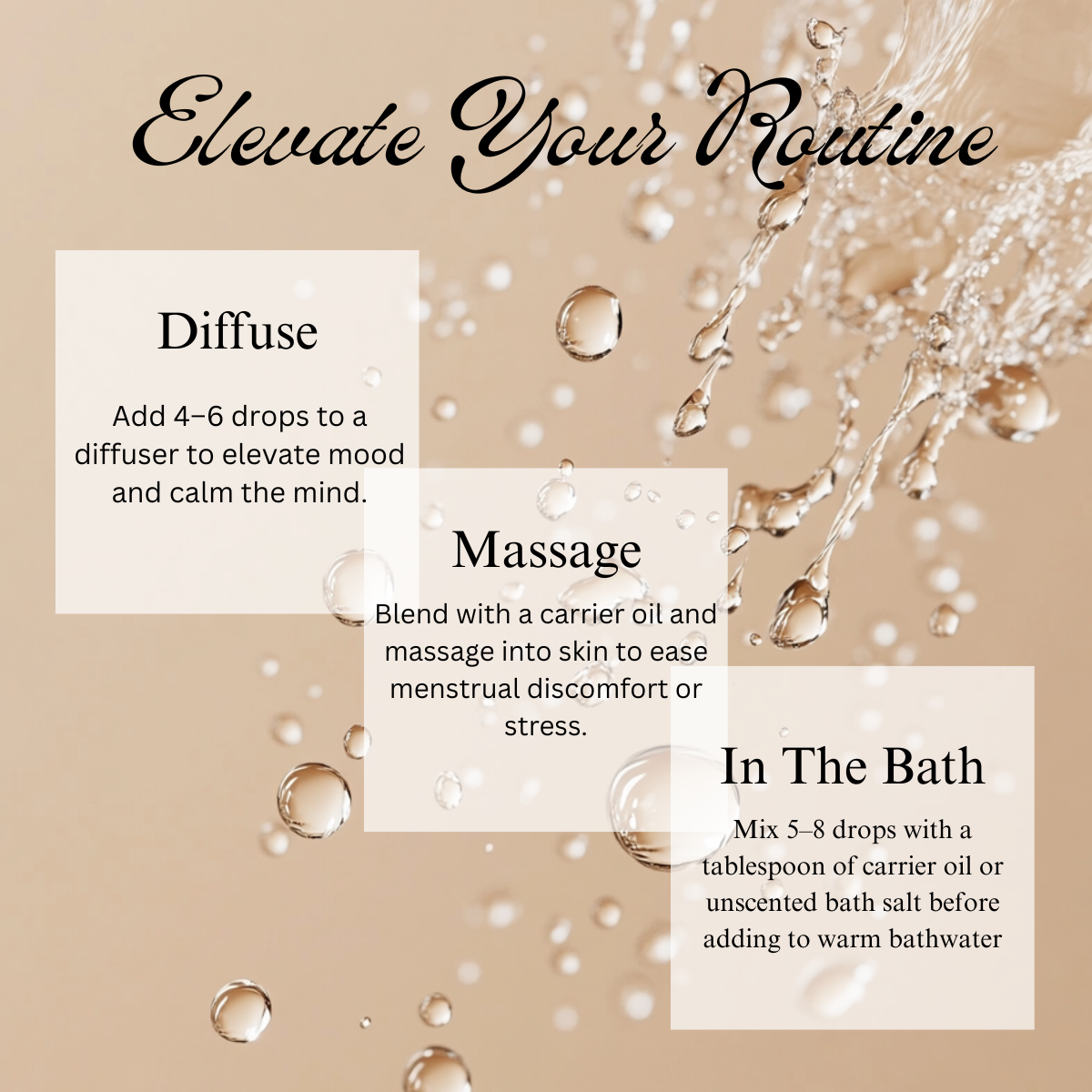 Diffuse a few drops to fill your space with its calming, balancing aroma perfect for meditation or relaxation.
