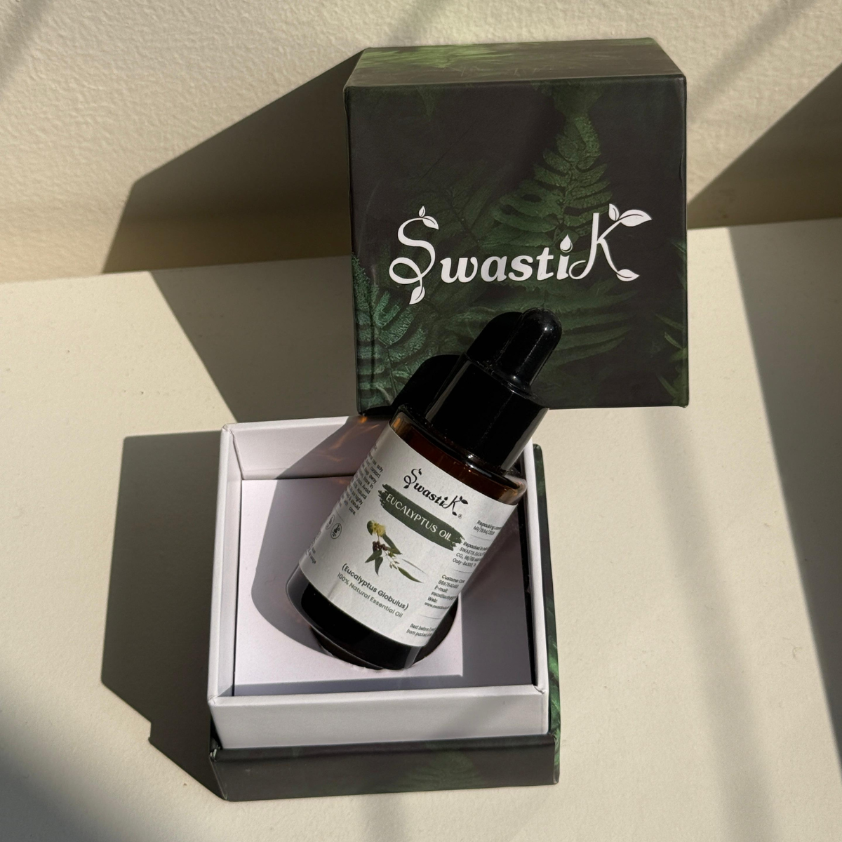 At Swastik, we capture this untouched purity in every bottle of our Eucalyptus Essential Oil. Each drop carries the uplifting clarity of the Nilgiris — fresh, invigorating, and alive with the unmistakable essence of eucalyptus. It is more than an oil; it is a breath of nature’s vitality, distilled into a moment of renewal.