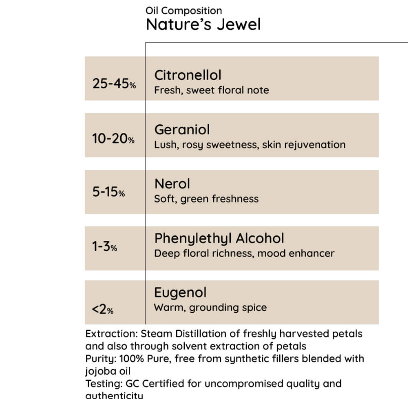 - Ageless Radiance: Revered for centuries for its skin-renewing properties, rose nurtures a complexion that glows from within.