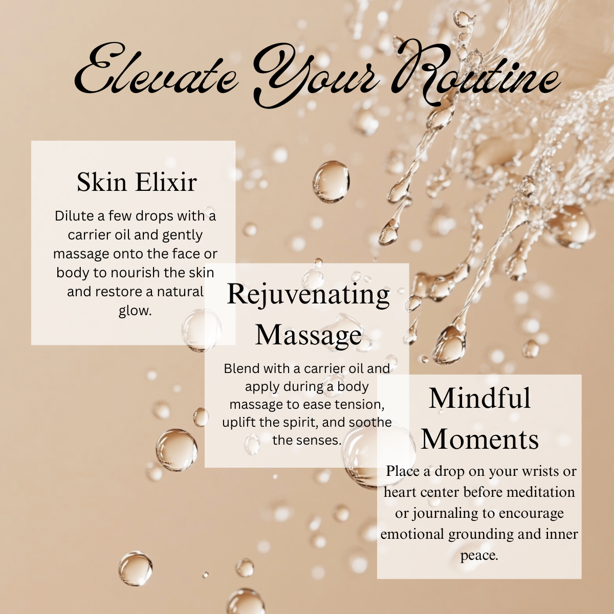 Add a few drops to your diffuser to infuse your space with tranquility and refined beauty.