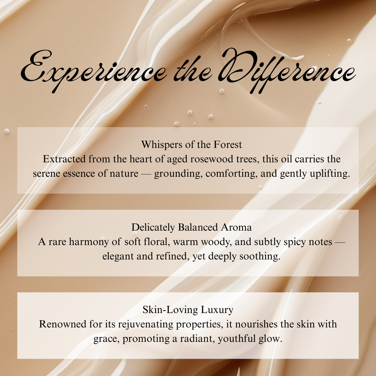 Every bottle of our Rosewood Essential Oil is a tribute to balance ethically sourced, artfully distilled, and lovingly bottled to preserve its gentle yet profound beauty.