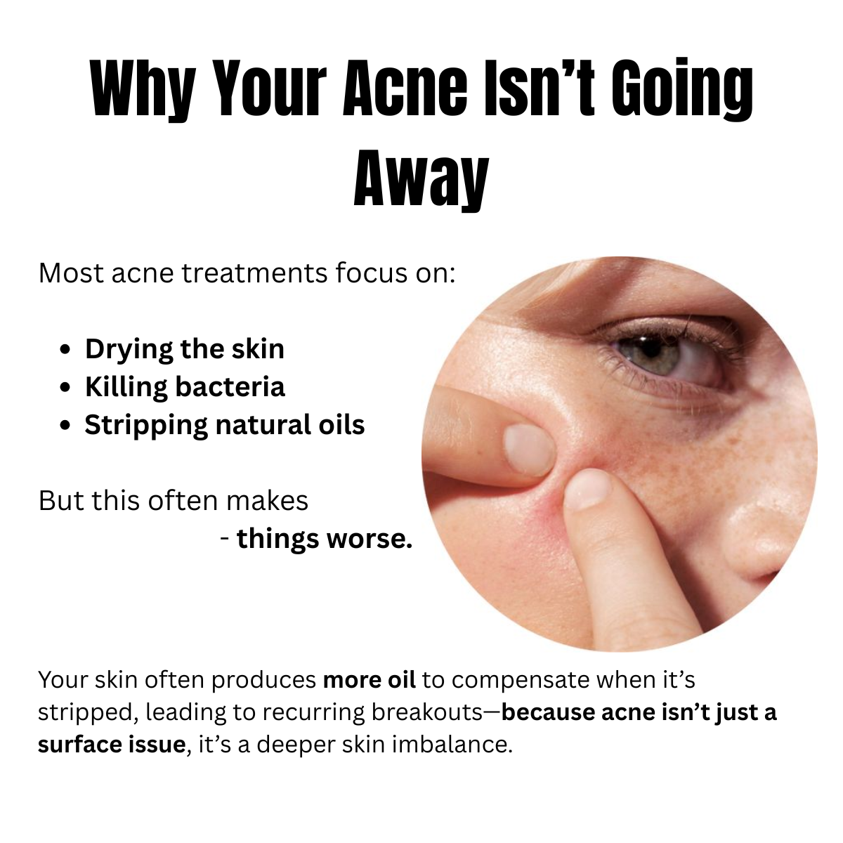 Most acne treatments focus on drying the skin — often leading to increased oil production and recurring breakouts.