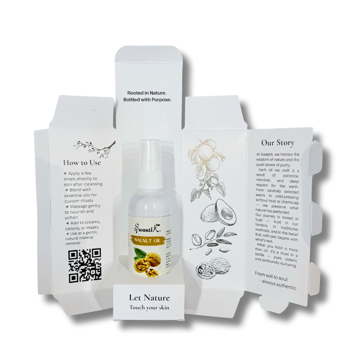 At Swastik, we invite you to experience the heart of nature’s wisdom with our Walnut Oil a luxurious oil that embodies the very essence of grace, vitality, and enduring beauty.